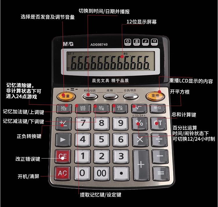晨光計(jì)算器帶語音辦公用會(huì)計(jì)專用商務(wù)計(jì)算機(jī)辦公室大號大按鍵大屏幕女真人發(fā)音財(cái)務(wù)學(xué)生用小號便攜電子記算器