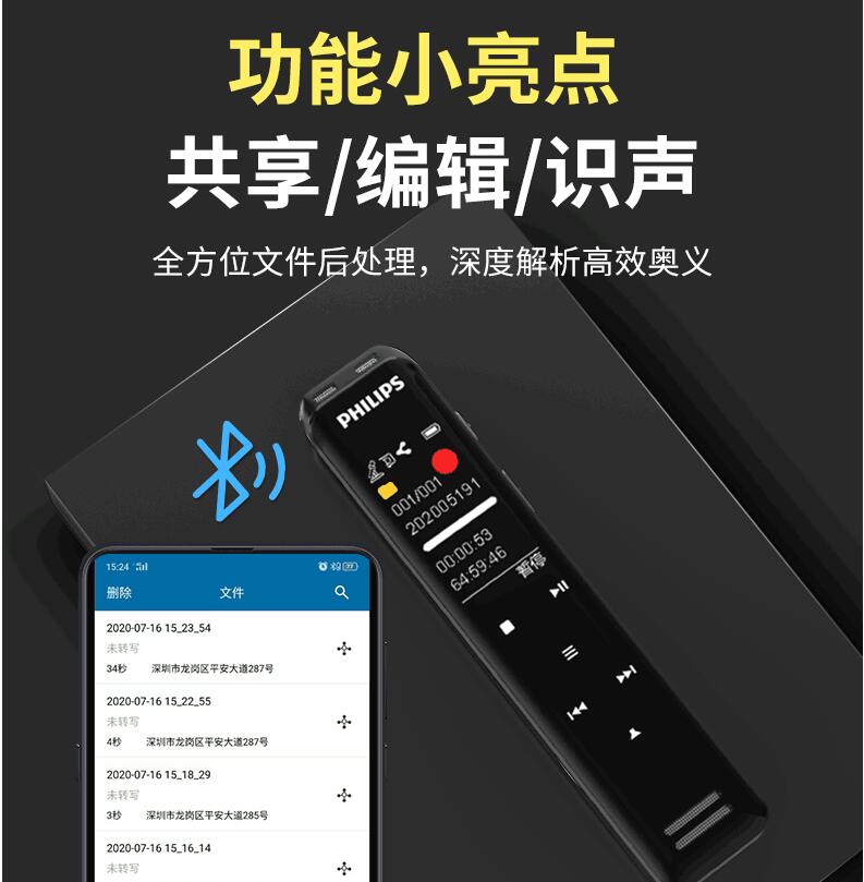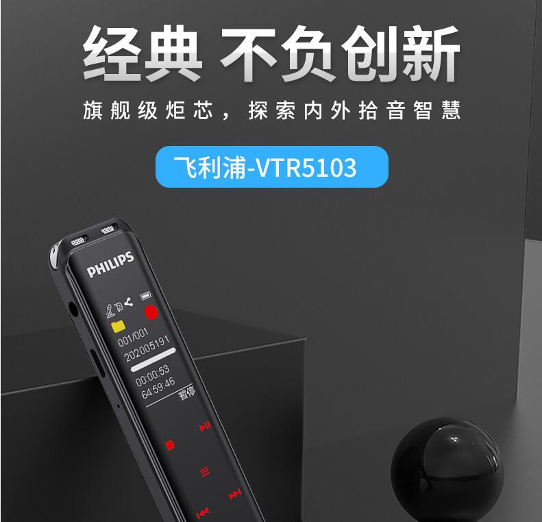 飛利浦VTR5103 Ai智能錄音筆轉(zhuǎn)文字翻譯專業(yè)高清降噪小型超長(zhǎng)待機(jī)